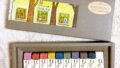 - 使い方:ぬれた筆でよくこすって色を出します。やさしく色づくタイプで、淡い色もあります。重ね塗りで少しずつ濃くできます。