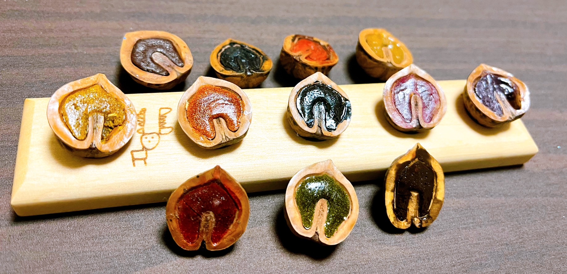 今回は、クルミやドングリの殻に入った、とっても可愛らしい絵の具をご紹介します。